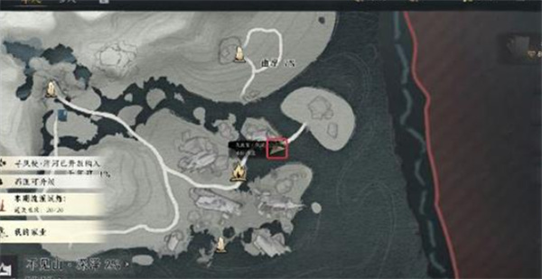 1、传送到不见山·曲岸界碑处,从界碑动身,朝着东北方向的山脚走去,就能看到傅笛礼蹲在石阶旁边,他头顶有个灰色的万事知标识。