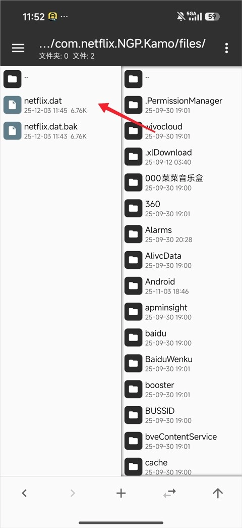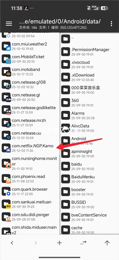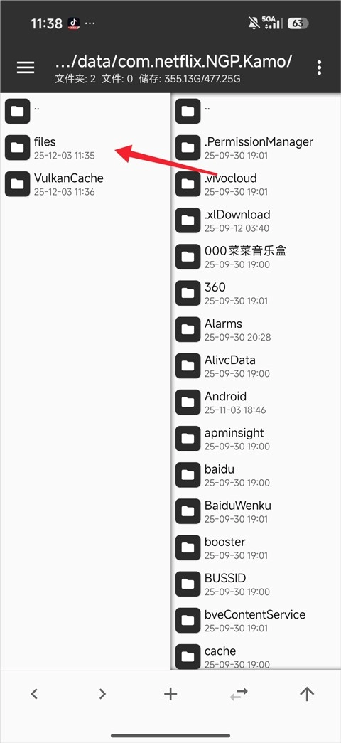 在列表里就能找到荒野大镖客救赎手机版的游戏目录,通常它的名称是com.netflix.NGP.Kamo,进入这个文件夹之后,接着打开Files目录。