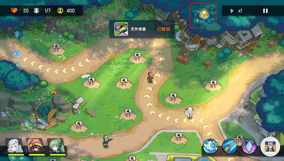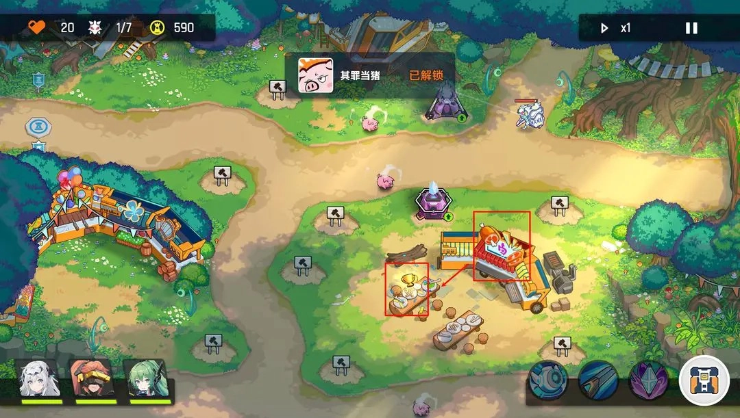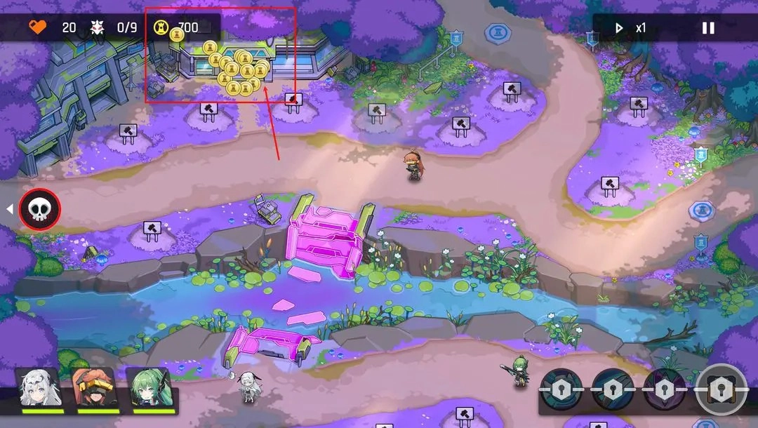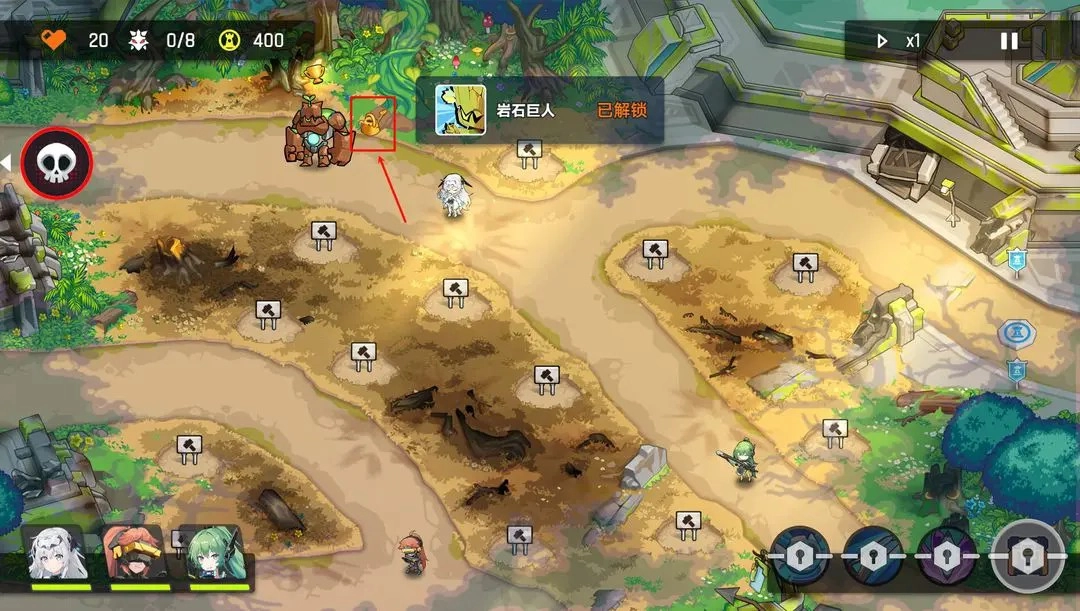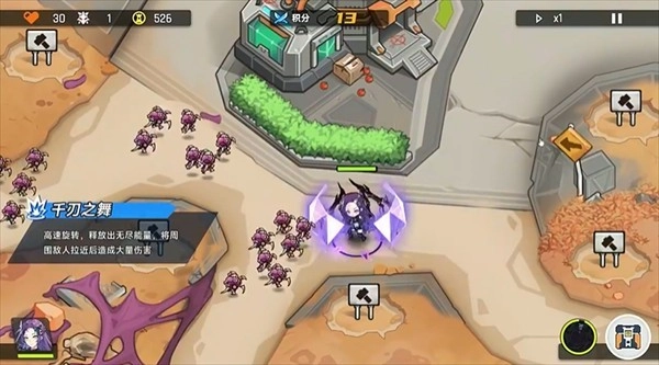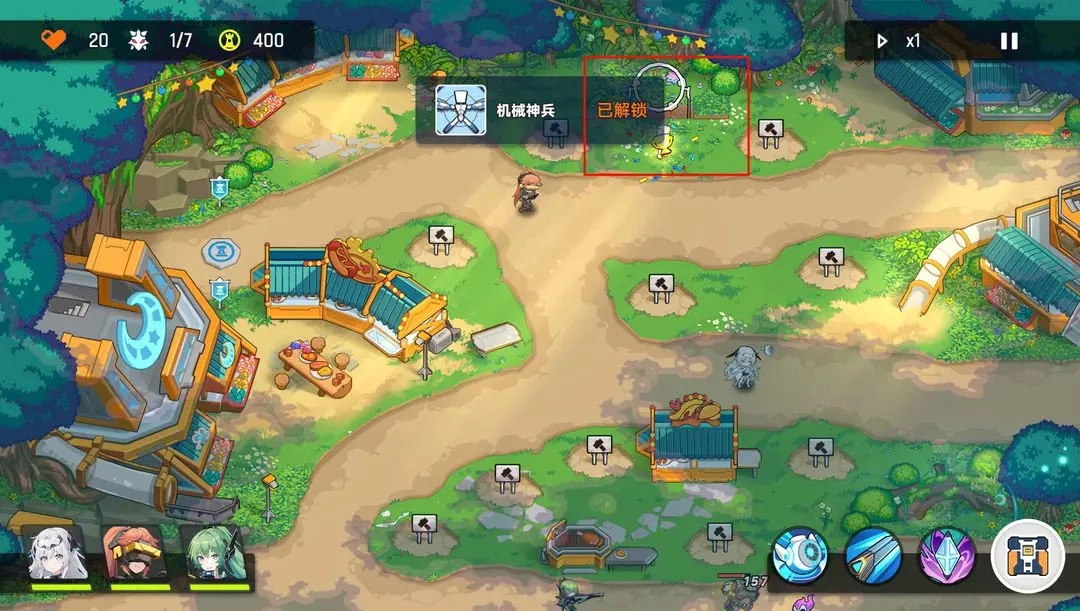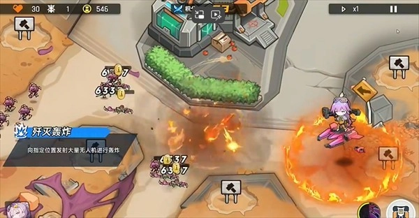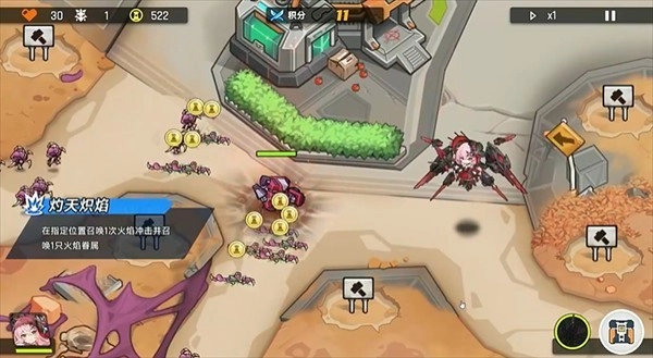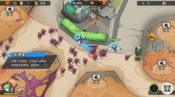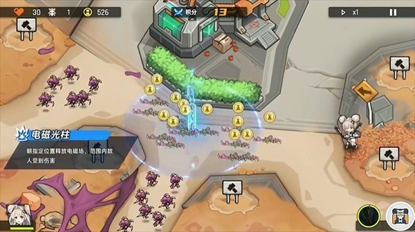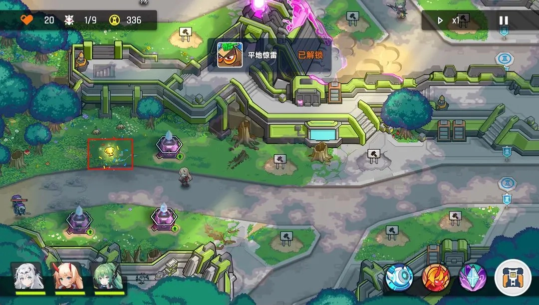 开局后先在下路放置炮塔,等炮塔升到两级,先守一波敌人的进攻,同时囤积经济资源,这个过程会很轻松。