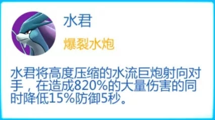水君朝对手轰出高度压缩的水流巨炮,在造成巨额伤害的同时,还会削弱敌人15%的防御,效果持续5秒。