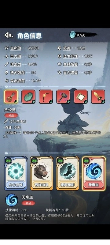 所以我们可以先用天帝血、光环和疾风无影来大幅堆叠自身当前的属性,之后再召唤召唤物,这样召唤物的数值也会变得很高,与此同时,本体因为有天帝血能攻击全部目标,伤害也相当可观。