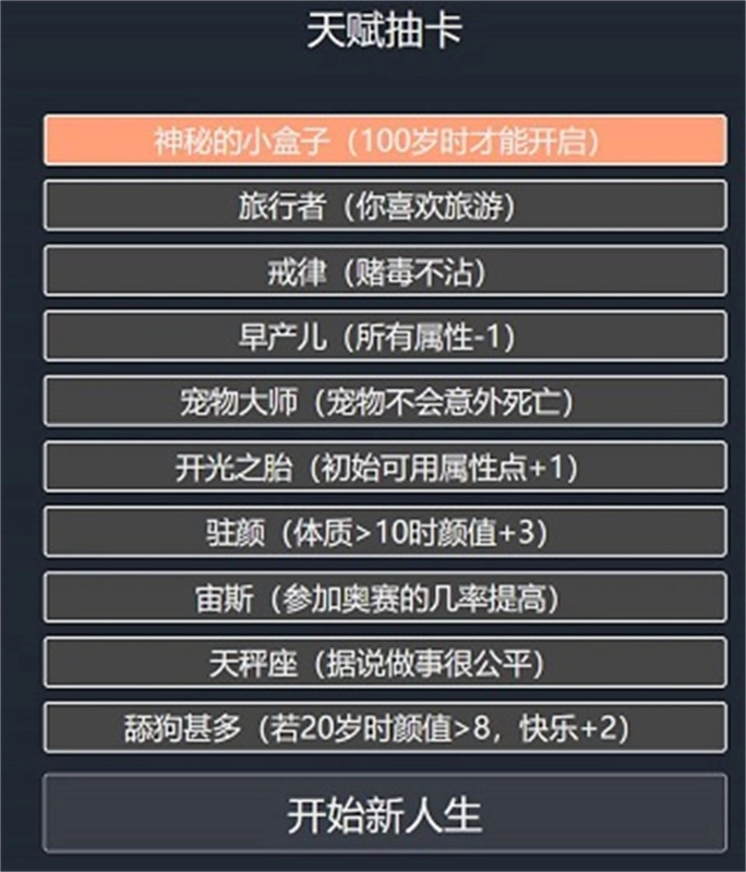 其次就是开局时把家境选得好一些,这样能避免因家境太差而早夭。