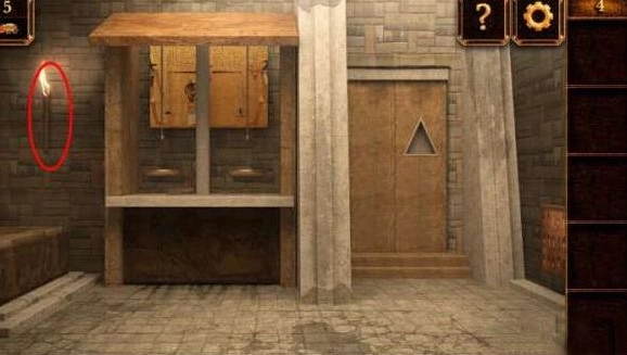来到第四关游戏,我们首先点击图示火把将其收集。