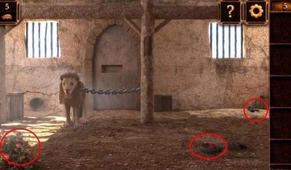 按照从左往右的顺序把死狮身上的图案组合起来,铁门就会打开,这样就能通关啦!