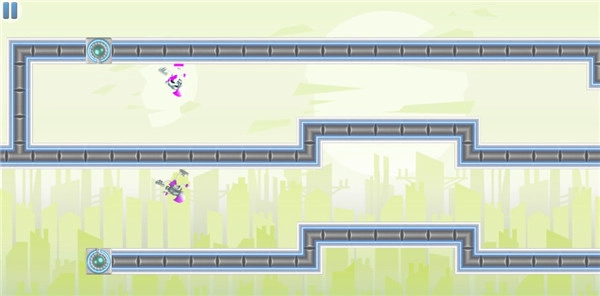 经过激光照射后,我们会一分为二,游戏难度将大幅增加,需要同时操控两个角色避开障碍物。