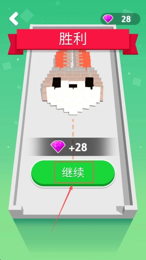 完成关卡:当界面显示“28 胜利 +28”后,点击“继续”按钮,即可进入下一关。