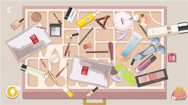 所有化妆品都放好后,剩下的粉扑没地方安置,点击粉饼盒就能打开。