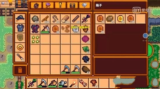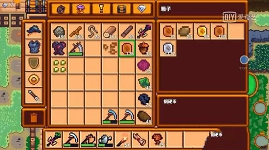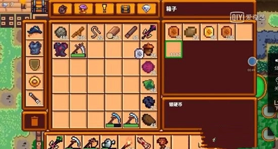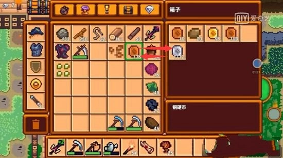 然后打开箱子,把找零的88个铜币放进去,这样背包里就又只剩银币了,接着我们再买一颗草莓种子。