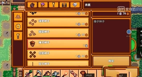 接下来我们和农业商人进行交易,直接采购橡树种子——记住,是橡树种子,橡树种子,重要的事情得强调三次。