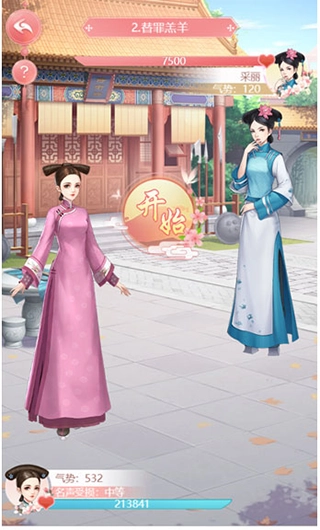 接下来聊聊剧情部分,主线剧情的内容相当精彩,连贯起来就像一部精彩的宫斗大戏,喜欢宫斗题材的小主们可千万别错过这些剧情呀。剧情结束后就会进入战斗界面,右上角会显示敌方的名声和气势数值,左下角则是小主您的名声与气势。小主的气势越高,名声受到的损耗就越小,通过培养伙伴、给伙伴升级,或是赠送能提升气势属性的书籍,都可以提高您的气势哦。