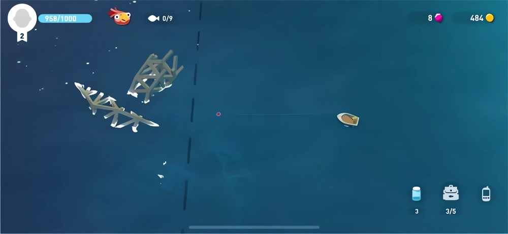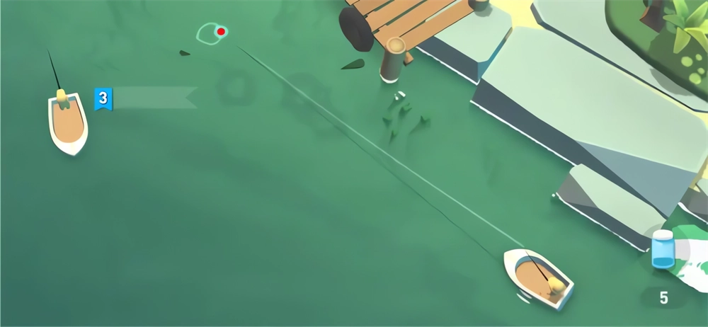捕捉稀有鱼类:稀有鱼类的出现时间难以预料,捕获起来也更有难度。钓普通鱼时,只需轻轻点击屏幕,渔夫就会自动完成操作;但当稀有鱼类咬钩后,屏幕下方会弹出一个进度条,玩家需要通过按住屏幕(让进度条延长并向右移动)、松开手指(使进度条缩短并向左移动)的方式,让进度条持续与小方框重叠,直到把鱼拉到船边;要是进度条长时间偏离方框的左右两侧,鱼线就会断掉,所以操作时得保持手部稳定,集中注意力。