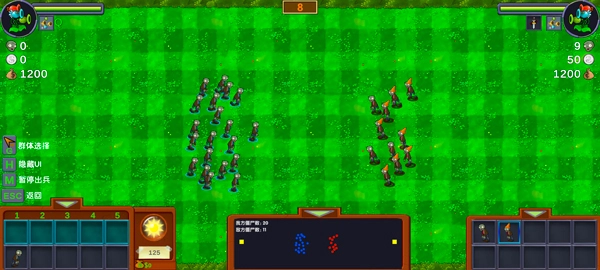游戏开始后,顶部的倒计时结束时,系统会自动给敌我双方分配资源,包括人数和资金。你可以依据我方现有的资源,挑选合适的僵尸派出;也能暂停或恢复我方僵尸的出动。每派出一只僵尸,都会从当前资金(带有硬币标记的那一栏)里扣除该僵尸所需的费用。要是当前资金不够,或者可出动的僵尸数量为0,就没办法派出僵尸了。不同关卡的资源都设有上限。