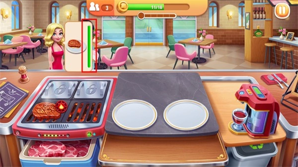 注意蓝色框框内的进度条,不要让食物糊了