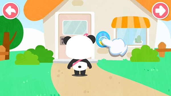 场景开始后,小熊要去朋友家做客,先请宝宝点击门铃敲门,等企鹅朋友开门就好啦。