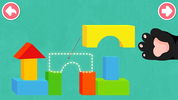 在道过歉之后,就该和企鹅小朋友一起把积木搭好啦,只要把积木移动到虚线的位置就可以了。