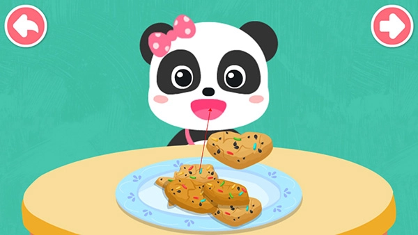 接下来就可以引导宝宝喂小熊吃饼干了,把饼干挪到小熊的嘴巴里就行。