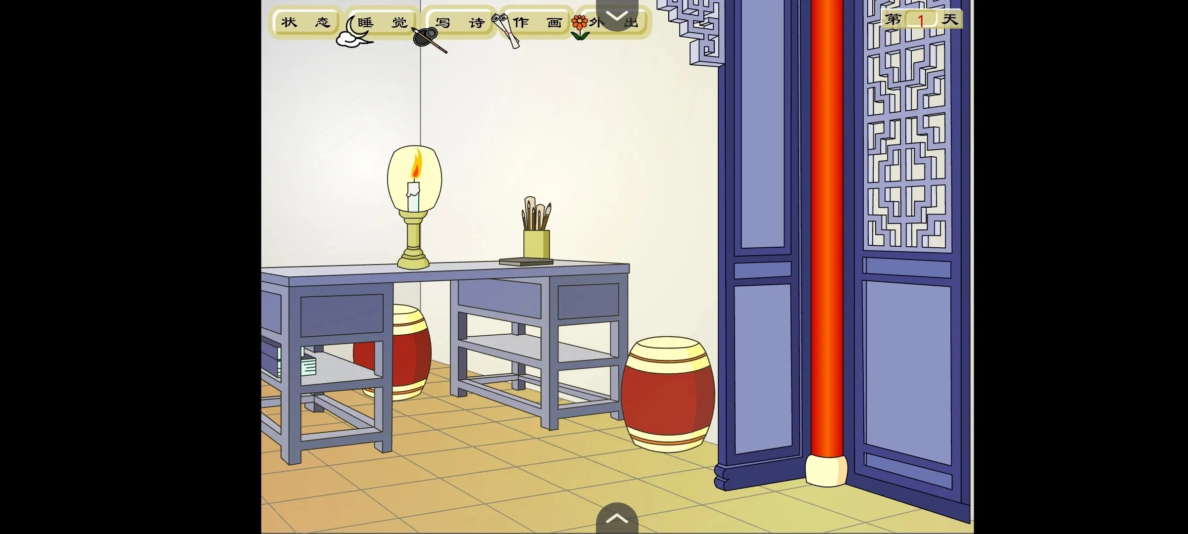 等攒够了足够的银子,就去市集上的双福客栈喝酒。每次喝酒要花10块,而且每次喝完个人魅力都会有所提升。简单来说,就是借助喝酒这个方式来增加魅力值。等魅力提升上去之后,就可以去作画了,不过当然,也得留意知识方面的提升。