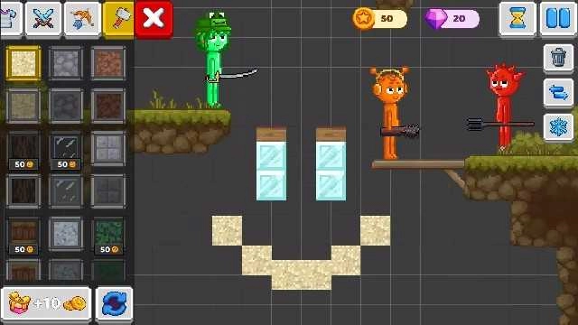 切换到建造模式后,能从方块库中挑选草地、岩石、冰面等各类材质,随意拼搭地形构造。借助调整布局来改变角色的行动路线和互动形式,打造出独一无二的小型关卡或实验场所。