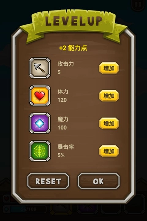 玩家每通过一个关卡,都能得到相应的金币与经验值作为奖励,当经验值积累到上限时,角色就会提升等级。