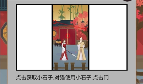 之后用石头砸下猫猫,最后我们点击门就能出去了。