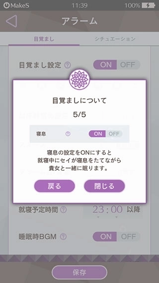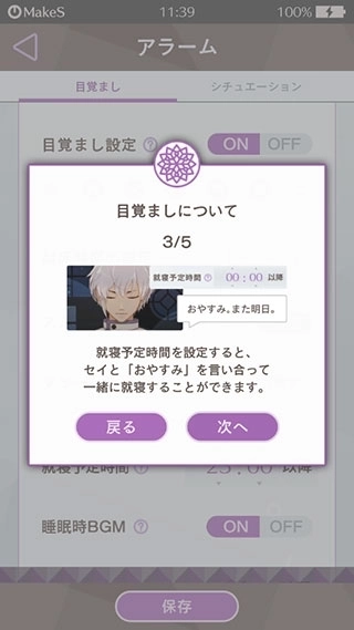 设定就寝预定时间时,你可以和sei说“晚安”,然后一起睡觉。