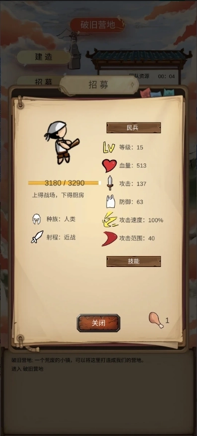 离线一段时间后积累的大量资源,正好可以用来升级金矿和伐木场,通过这种利滚利的方式,很快就能解锁所有建筑。等把户口提升到满级,你就能招募50名民兵了。
