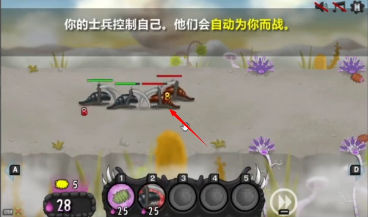 你的士兵会自动进行战斗,你只需要放置士兵即可