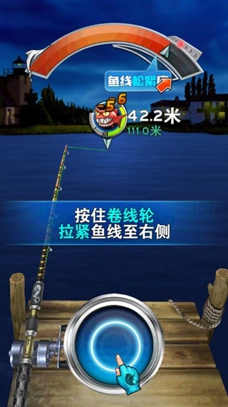 怎样才能让鱼线一直不断呢?其实在游戏屏幕的上方有一条拉力条,它会控制玩家的操作节奏。拉力条的右侧还有一块危险区域,这块区域代表着拉力条的承受极限。当拉力条快要达到满格状态时,玩家就得马上松手,不然鱼线就会断裂,鱼儿也会趁机逃走。