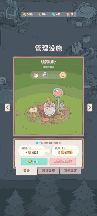 游乐设施可作为第二选择(同样优先升级区间跨度大的),其主要作用是获取食谱能量以及提升升级价格。