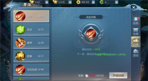 参与帮派任务和活动能够获得帮派贡献,利用这些贡献可以提升帮派心法,进而增强人物属性。