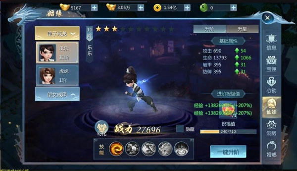 仙娃:玩家能消耗元宝或者利用免费次数和伴侣进行洞房,有一定几率得到仙娃,仙娃能够开展培养。