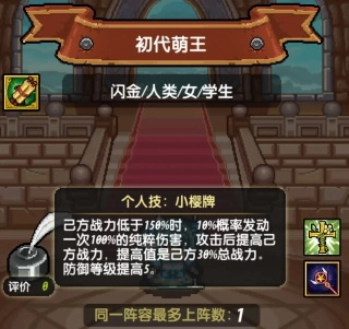 特点:阵容调整的需求处于中等水平,比暴击流所需的调整多一些,但比回复流要少;强度方面也比较适中,同战力属性下能战胜暴击流,却打不过闪王流,不过闪王流的阵容配置难度较高,通常只有氪金大佬才会去凑这套阵容。