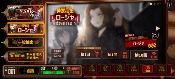 抽出玩法其实就是基础的抽卡机制,新手刚进入游戏时,花费1600货币必定能抽到一个三星角色。不过由于这款游戏支持无限刷初始号,所以这个新手必出三星的福利实际意义不大。另外,无论是普通卡池还是UP卡池,每天都有一次一折消耗狂气的抽取机会——只要购买了大小月卡,每天买两次体力后,剩余的资源刚好可以用来抽两次一折,性价比还是不错的。