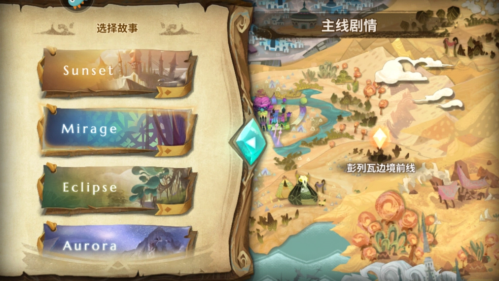 故事采用多角色视角展开,随着章节推进与角色间的剧情互动逐步发展。在玩家的引导下,六大种族角色的视角相互交织,共同构建出一个光明与黑暗并存、绚烂多姿的奇幻世界。