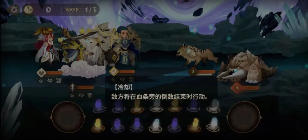 在挑战具体关卡前,记得留意关卡名称给出的提示,长按敌方单位可以查看其状态。拿1-5关卡举例,建议先强化自身训练,给黑位角色施加强化效果,凑齐两个黑四技能,等敌方的冷却时间刷新后,再释放黑魂攻击。