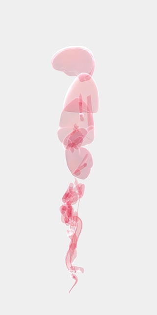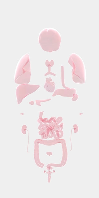 我们用手指在屏幕两侧拖动时,人体器官会被分开显示,这能更方便我们查找对应的器官;点击屏幕中央,器官则会重新聚拢。
