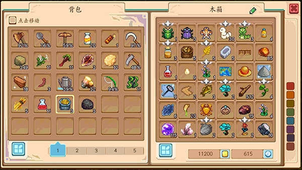 目前阶段请务必把背包格子多开至少三列,前期可以做一个木箱(只做一个是因为当前版本木箱需要4个钉子,成本实在太高了,甚至比用钻石开格子还贵,有点无奈;但只有一个木箱确实不太够用,只能先凑合用)。另外感觉红木的掉率似乎和伐木级别有关,级别越高掉率可能越高,不知道是不是我的错觉。多余的物品可以放到售卖箱卖掉(比如普通作物如果同时有高品质和低品质的,可以挑数量少的那种卖掉,但一般不建议卖,因为那边价格太低了)。不过有些东西不能卖,捡到了要留着,比如虎斑贝、鲍鱼、人参、还魂草、何首乌、海胆之类的——很多海产(除了鱼类)、药材,还有任务都会用到这些。