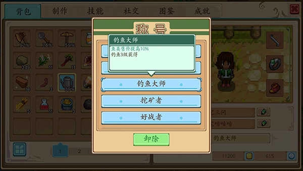 新添的农耕、伐木、钓鱼、采矿、战斗、畜牧、拾荒、烹饪这8项可选技能,能为你的专项技能加持BUFF。想钓到大个头又稀有的鱼?那就赶紧把技能点满,变身农场小能手吧。