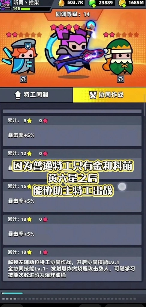 后续培养规划:待塔罗西亚完全成型后,剩余资源应优先集中投入到金和克科萌身上;当这两者都达到金红6星的阶段后,就能够辅助主力特工参与战斗了。