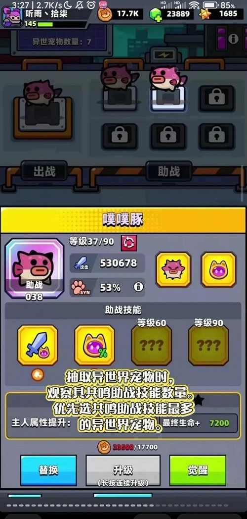后期选择:在企鹅、卡比、巴拉河豚这三者里挑选其中一个,优先考虑共鸣助战技能数量更多的宠物。