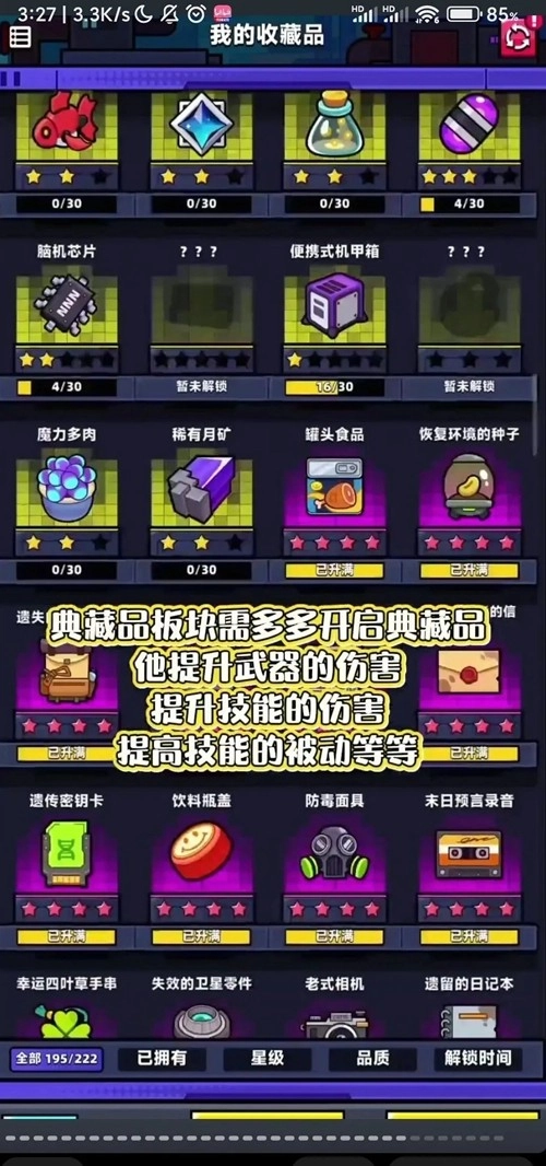核心操作要点:要多去开启典藏品,这样能增强武器、技能的伤害力以及被动效果。