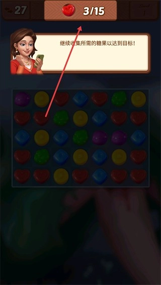 留意顶部的进度条,优先消除指定类型的糖果,不间断地收集直至满足所需数量。