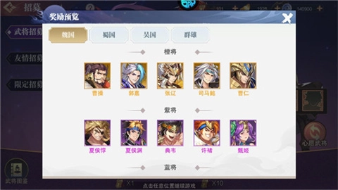 游戏里能让你挑选招募大部分三国名将,几乎所有经典人物都能在游戏中亲身体验。