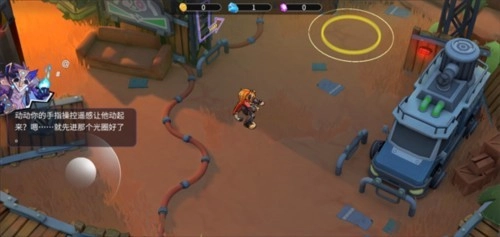 进入游戏界面后,会有NPC为你提供新手指引,而练习操控则需要用到摇杆。