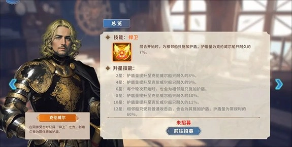 需要注意的是,【雷利】的技能是给“防御”属性最高的船长施加护盾,而【克伦威尔】则是给左右两侧的目标加盾,因此要记得把攻击型船只和防御型船只安排在耐久型船只的左右两边。