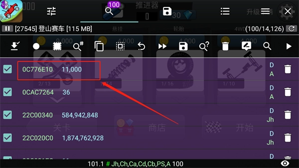 现在,我们能够完整看到金币数值对应的地址了,点击这个地址就行。
