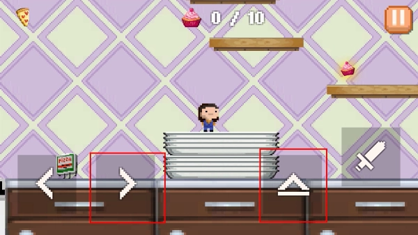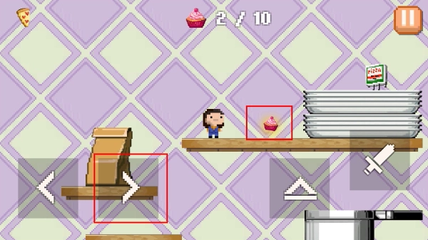 移动角色靠近平台上的【纸杯蛋糕】完成收集,通过方向按钮调整站位,为接下来跳跃到更高平台做好准备。