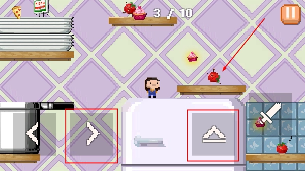 用左右方向键操控角色移动,通过向上键跳跃到各个平台,着手收集【纸杯蛋糕】来推动关卡进程。