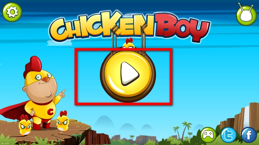 在小鸡超人游戏的首页,找到那个黄色的播放按钮并点击它,这样就能进入到游戏的关卡界面了。