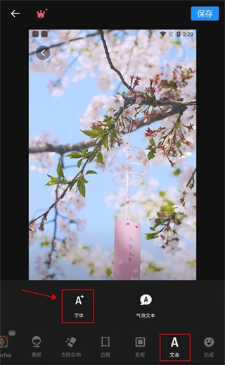 在照片编辑界面里,把下方的工具栏向左滑动,找到文本功能后选择字体。
